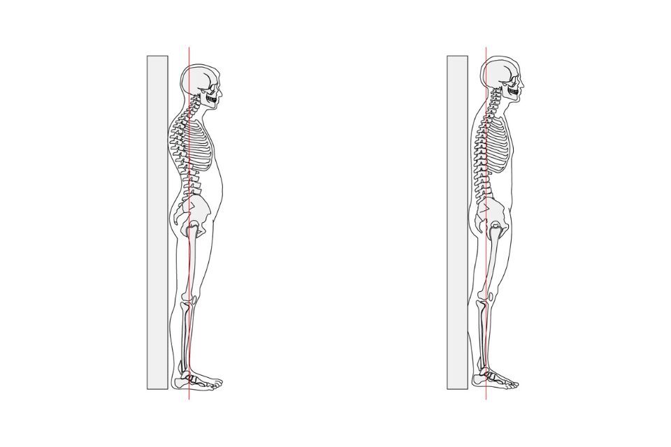 1. Lehnen Sie sich gegen eine vertikale Fläche: Stellen Sie sich so hin, dass Ihre Fersen, Ihr Gesäß und Ihre Schultern gegen die Wand gedrückt werden.